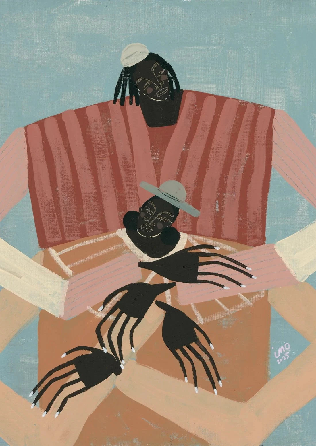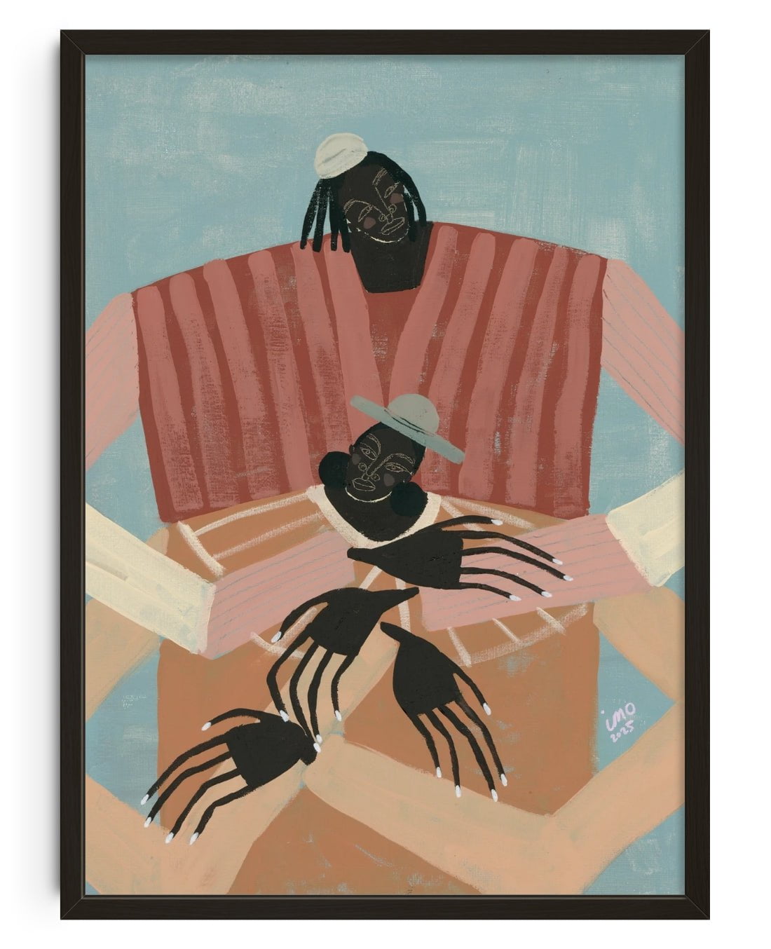 Ibi Meier-Oruitemeka/Studio IMO is an artist and mother who began painting for the first time in May 2024. Ibi immediately felt a deep affinity with acrylics paints as a tool of soulful self expression. Drawing inspiration from her British Nigerian identity. often exploring themes related to human connection and solitude. These themes are playfully communicated through her abstract figurative paintings..
